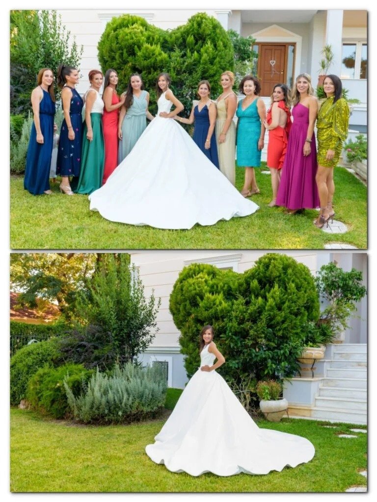 The preparation began with vitality and tenderness. Melina was surrounded by loved ones, smiles and fragrances that gave the room something festive, almost cinematic. Vasilis, full of anticipation, had that look of a man who knows that this day changes everything.