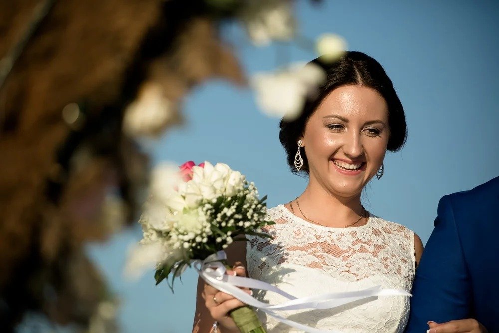Χωρίς συγγενείς, χωρίς φωνές και χειροκροτήματα. Μόνο εκείνοι οι δύο, μια παραλία, ο ήχος των κυμάτων και εμείς. Παρόντες σχεδόν ιεροφάντες, σιωπηλοί μάρτυρες σε κάτι απλό και ταυτόχρονα ιερό.