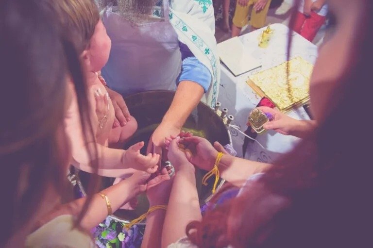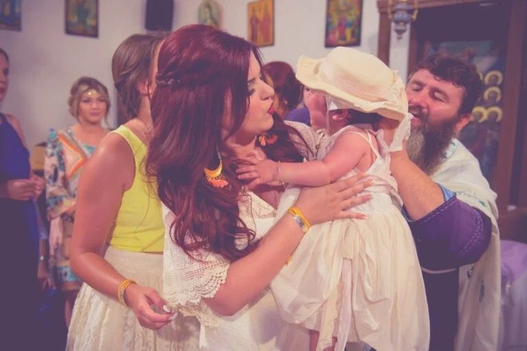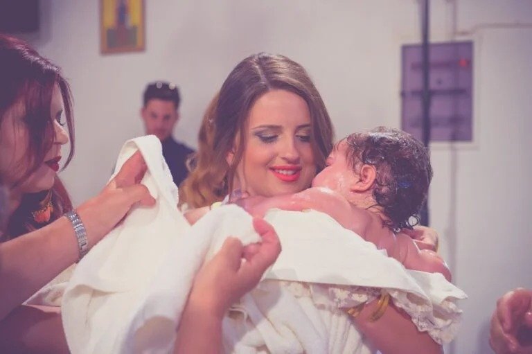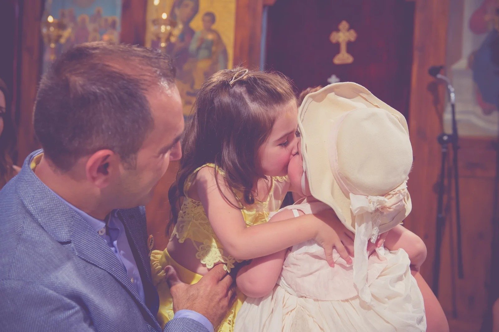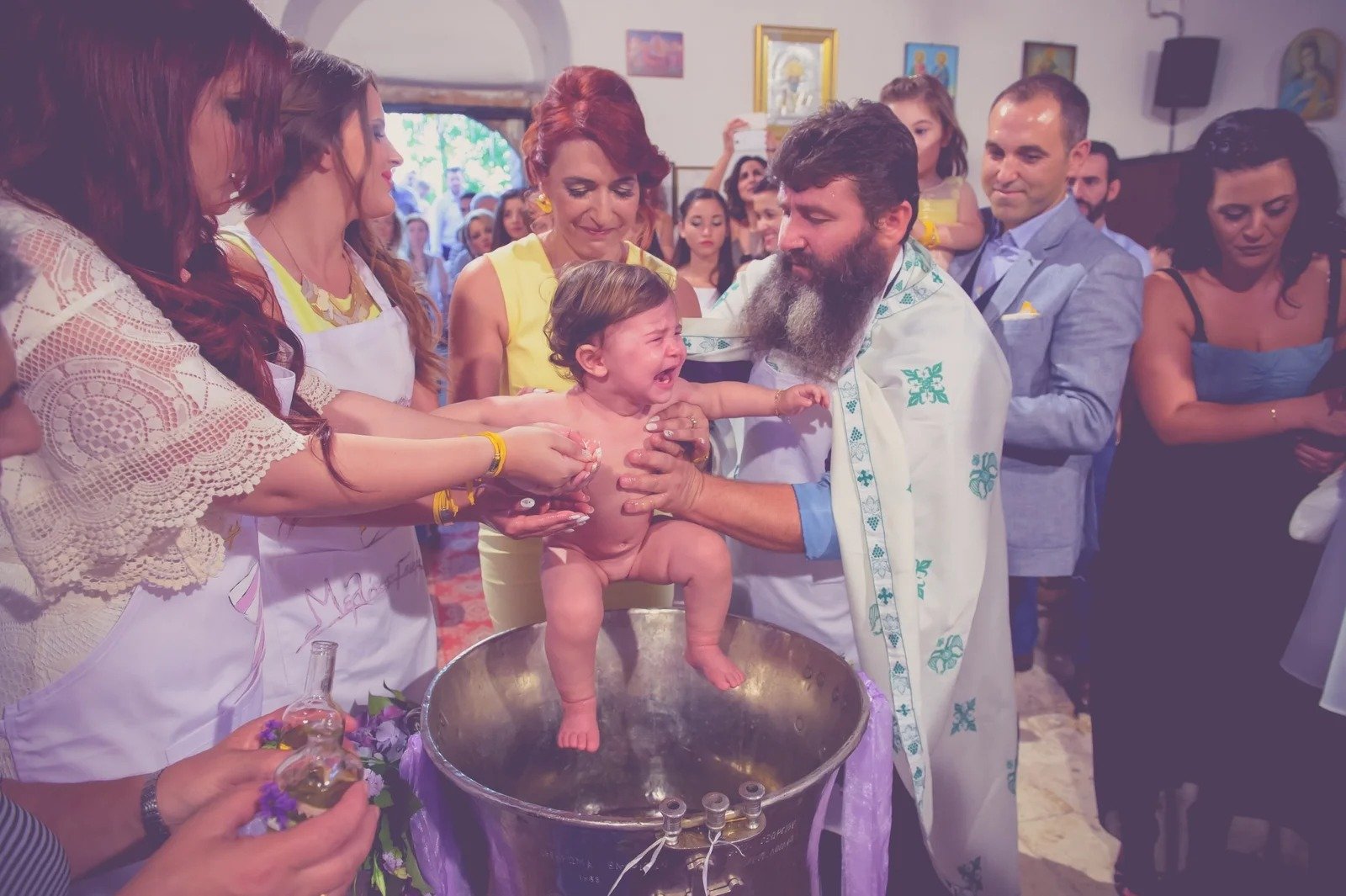Κι εμείς, εκεί, διακριτικά, παρόντες με τις μηχανές μας, καταγράψαμε τις εκφράσεις, τα γέλια, τις χαριτωμένες λεπτομέρειες. Τα μικρά παπουτσάκια, τα παιχνίδια, το φιλί του παππού, το χέρι της γιαγιάς που χάιδεψε το μάγουλό της λίγο πριν την κολυμπήθρα. Όλα όσα αξίζουν να μείνουν.